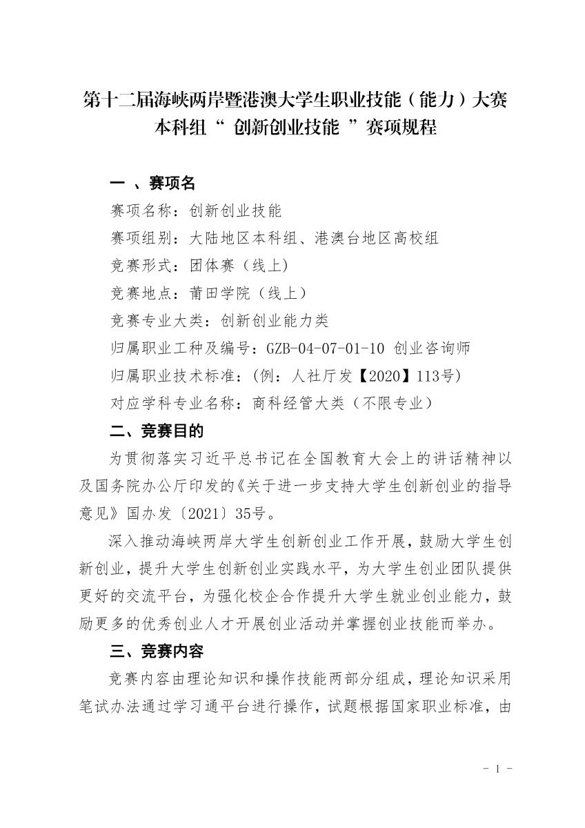 第十二届海峡两岸暨港澳大学生职业技能(能力)大赛 本科组“ 创新创业技能 ”赛项规程