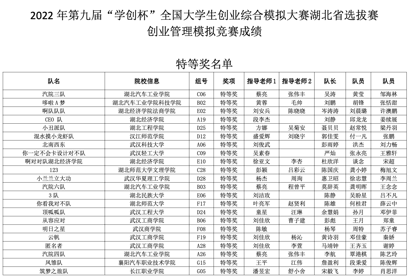关于2022年“学创杯”湖北省选拔赛竞赛结果公示的通知