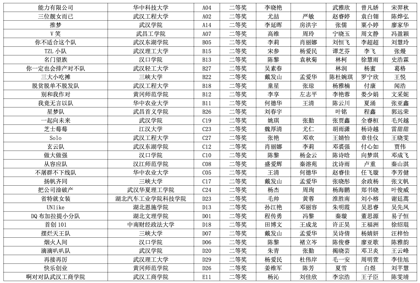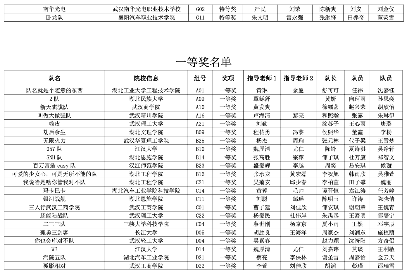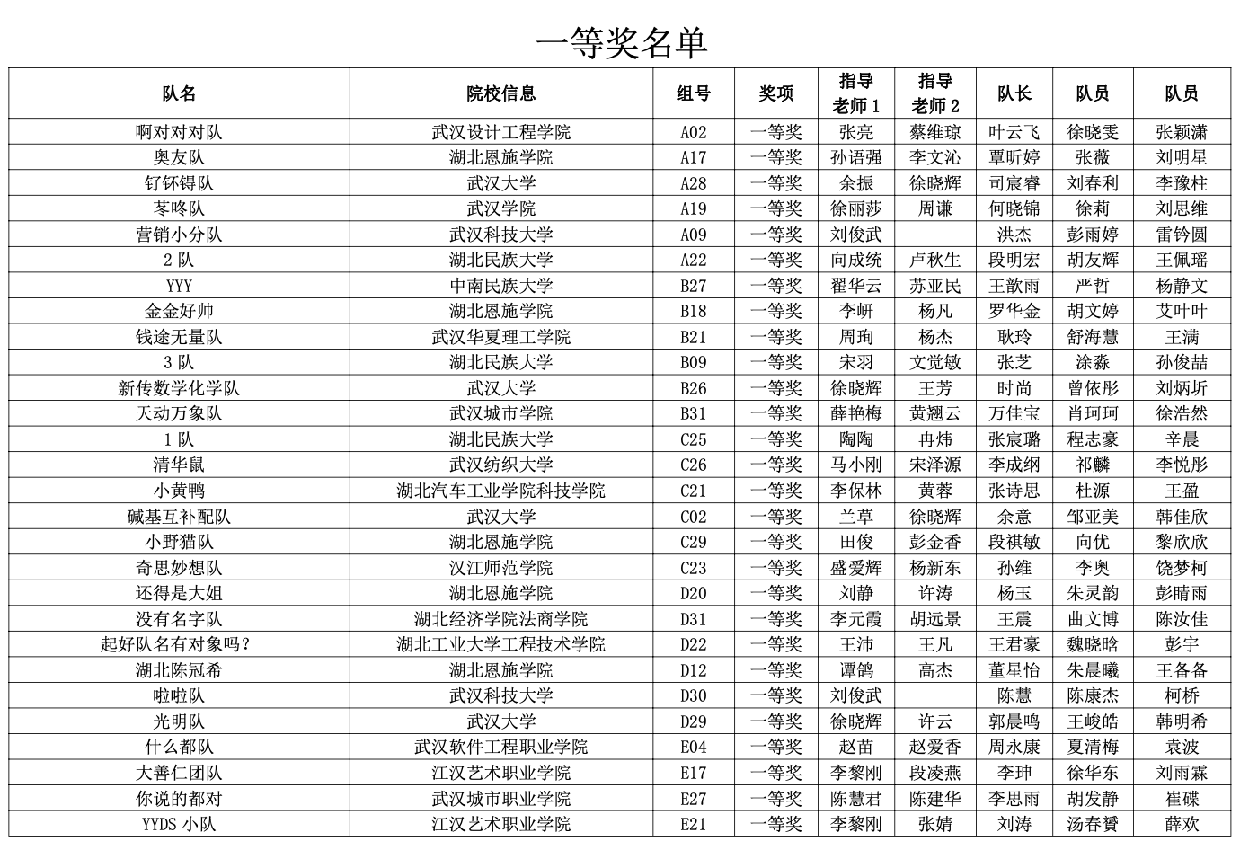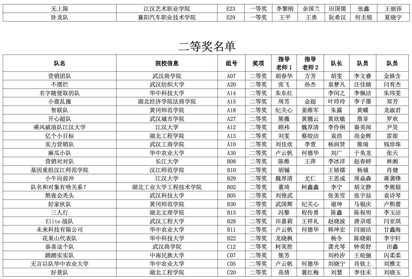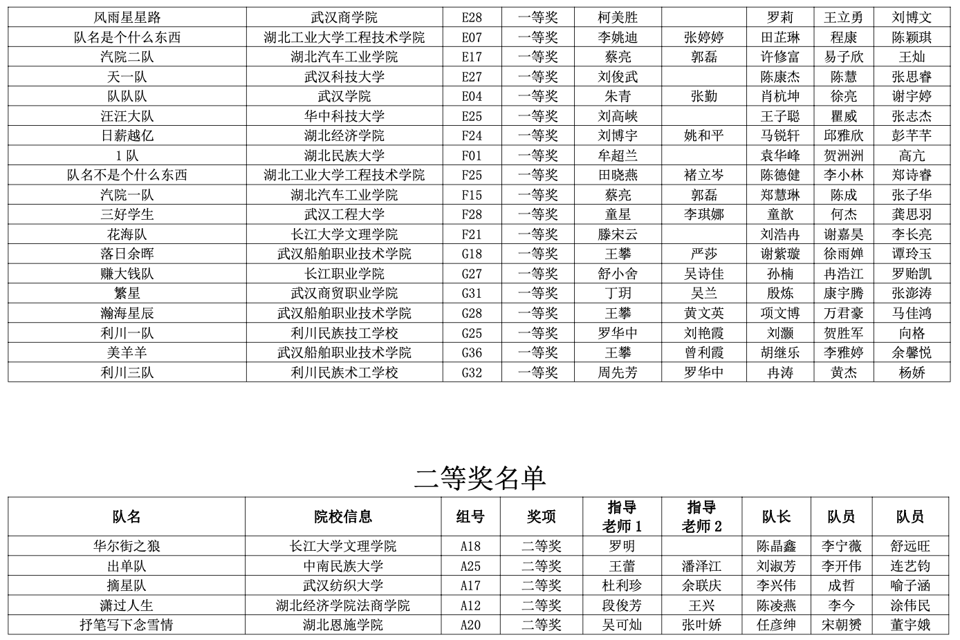 ● 获奖名单