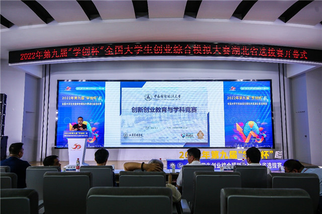 在举行开幕式和研讨会的同时,2022年“学创杯”全国大学生创业综合模拟大赛湖北省选拔赛同时拉开序幕。比赛下设创业管理模拟竞赛和创业营销模拟竞赛两个赛道,其中,创业管理模拟竞赛在创业之星平台上进行,检验创业团队的初创企业管理能力、创新性、商业性以及团队竞争力,分为小组赛和排位赛,排位赛由软件模拟和运营答辩两个环节组成。创业营销模拟竞赛在营销之道平台上进行,通过在虚拟仿真的市场环境中开展营销模拟实战,检验创业团队的营销推广能力。根据赛程安排,创业管理模拟竞赛由武汉工程大学负责组织,共有208支队伍参加比赛,比赛分为两轮,分别为小组赛和排位赛,赛程持续两天;创业营销模拟竞赛由武汉科技大学负责组织,共有156支队伍参加比赛,赛程持续一天。参赛队伍在各自赛道上竞争角逐,比拼团队协作、创业思维、营销决策等综合能力,赛场竞争激烈。最终,创业管理模拟竞赛有24、27和35支队伍分别获得特等奖、一等奖和二等奖;创业营销模拟竞赛有15、18和33支队伍分别获特等奖、一等奖和二等奖。