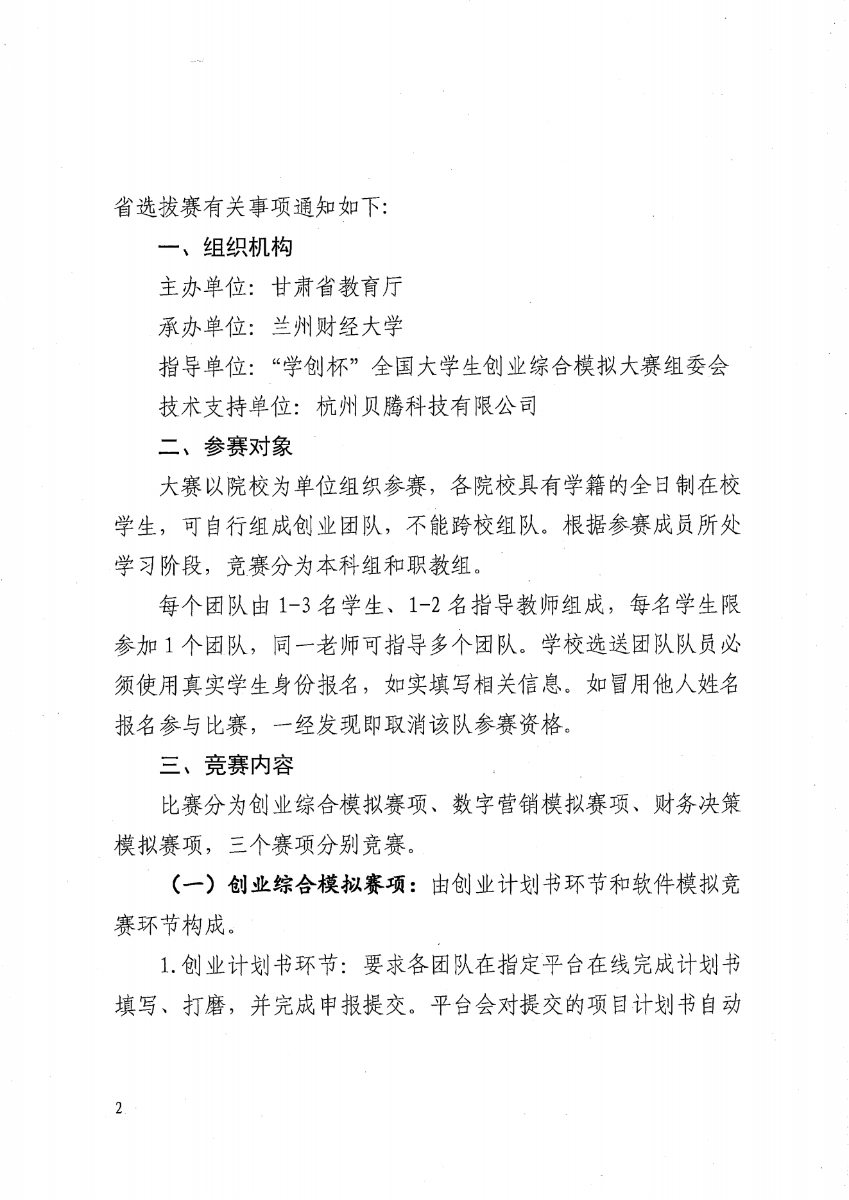 兰州财经大学关于举办第十二届“学创杯”全国大学生创业综合模拟大赛甘肃省选拔赛的通知(第二轮)