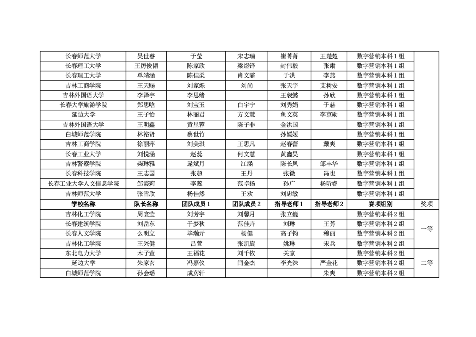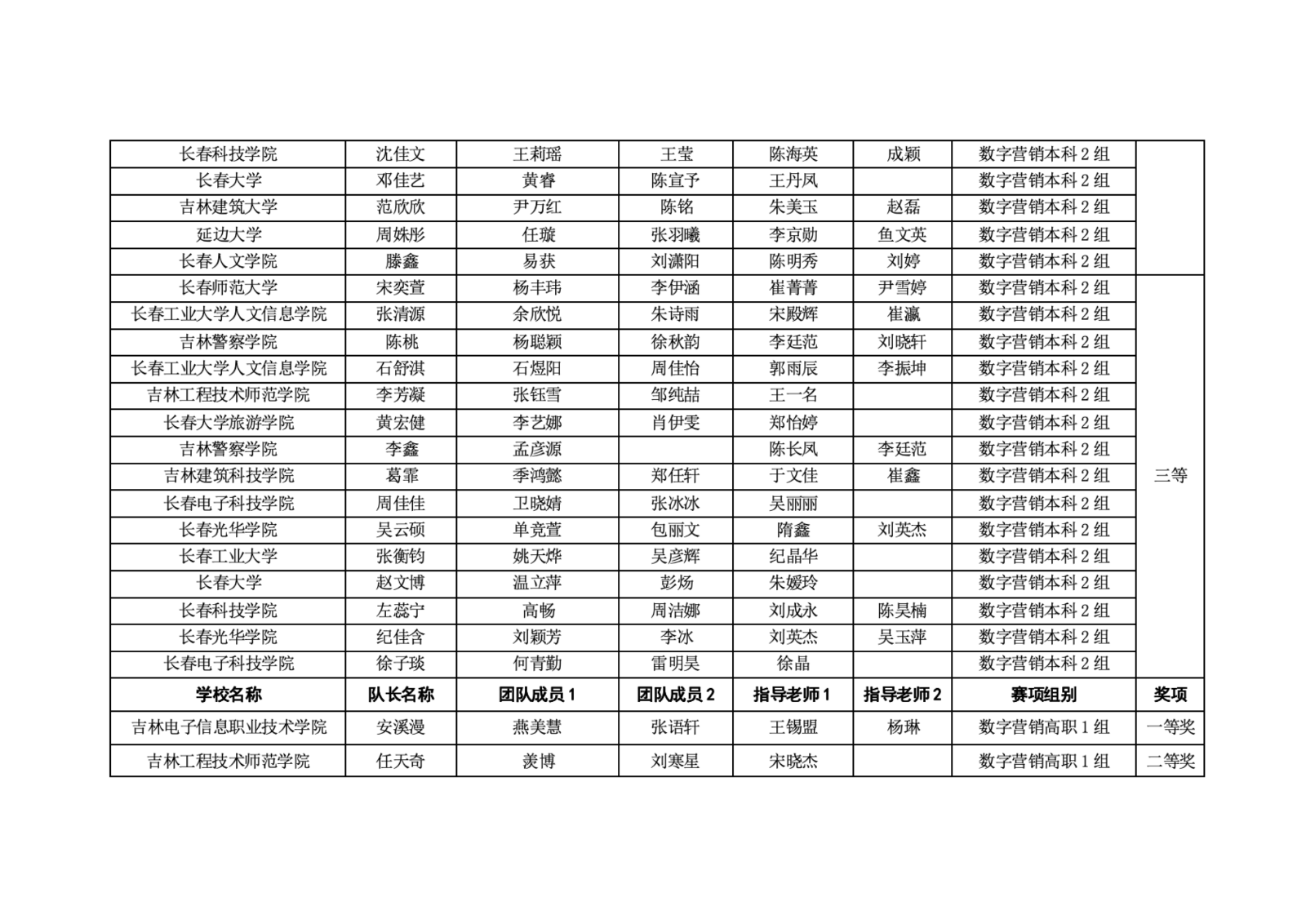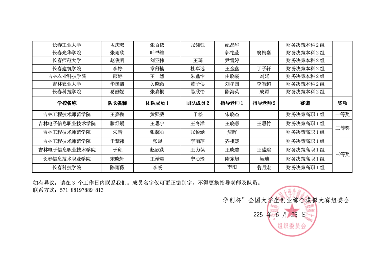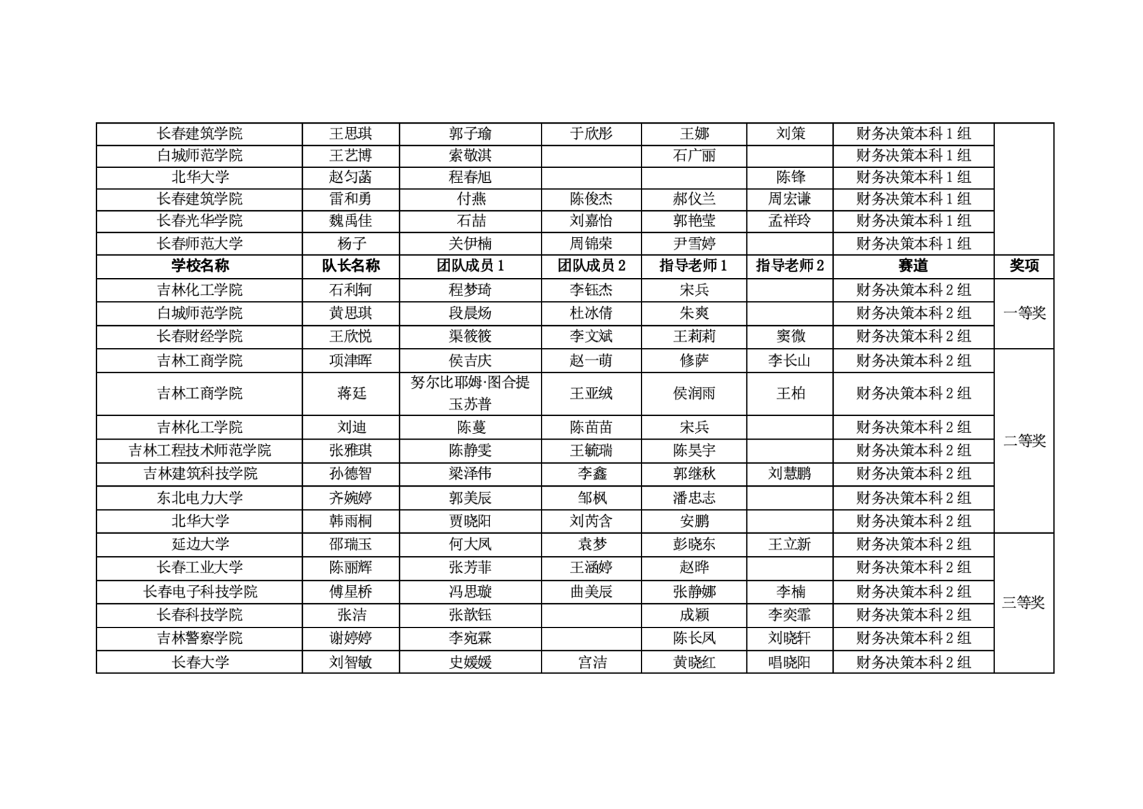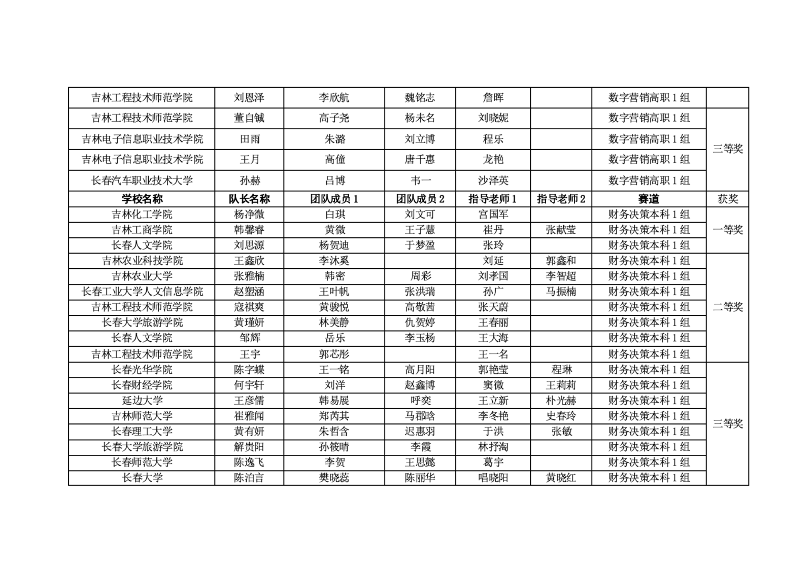 第十二届“学创杯”全国大学生创业综合模拟大赛吉林省选拔赛获奖名单