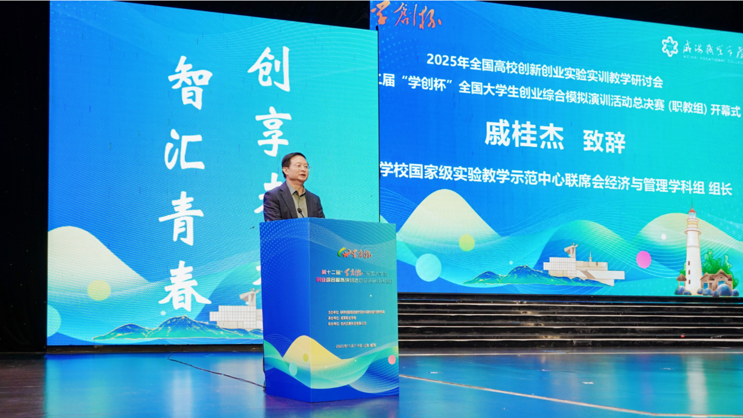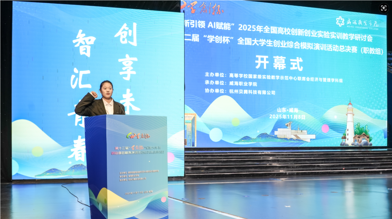 11月7日-9日,由高等学校国家级实验教学示范中心联席会经济与管理学科组、中国陶行知研究会主办,威海职业学院承办,杭州贝腾科技有限公司协办的第十二届“学创杯”全国大学生创业综合模拟演训活动总决赛(职教组)暨2025年全国高校创新创业实验实训教学研讨会在威海职业学院成功举办。来自国内125所高校、172支团队齐聚赛场,共赴这场竞技盛会。