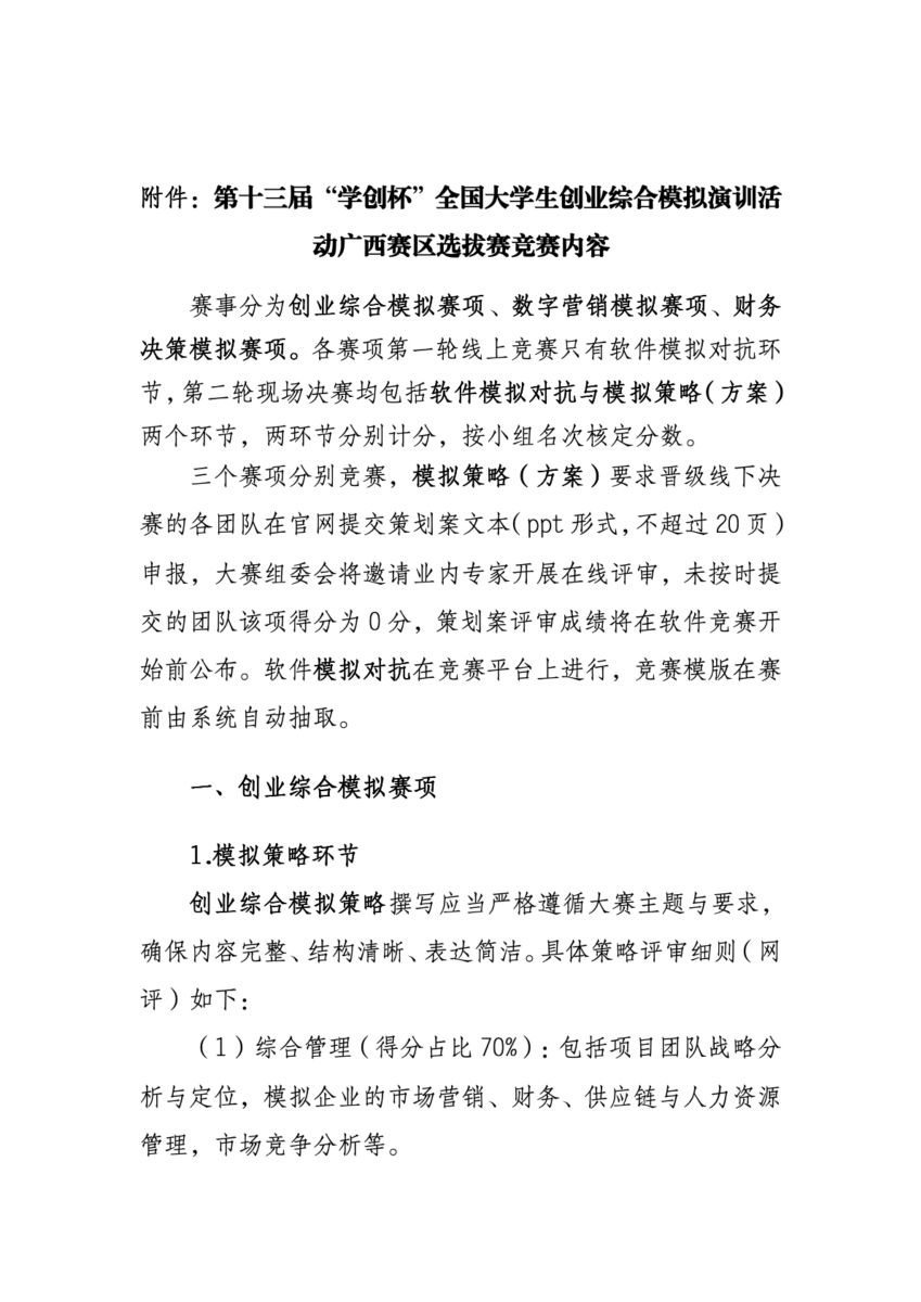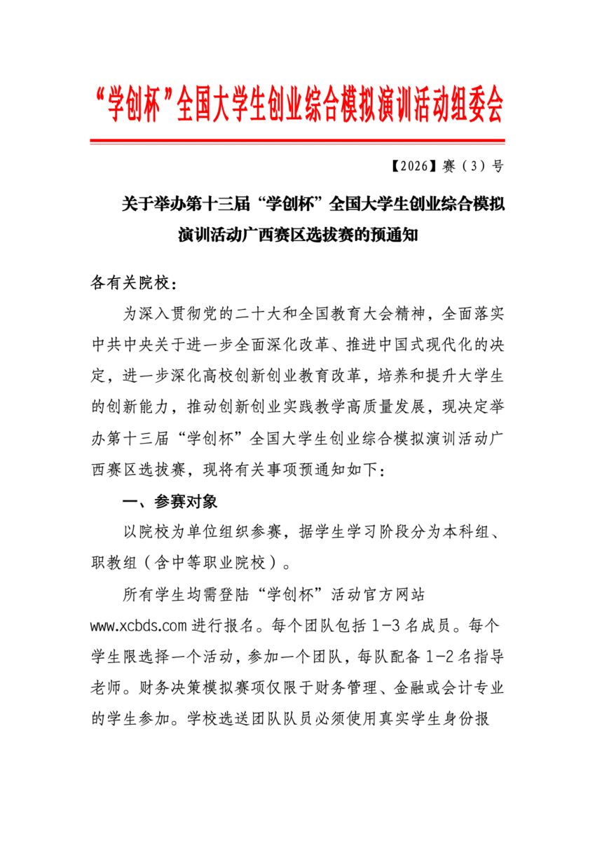 关于举办第十三届“学创杯”全国大学生创业综合模拟演训活动广西赛区选拔赛的预通知