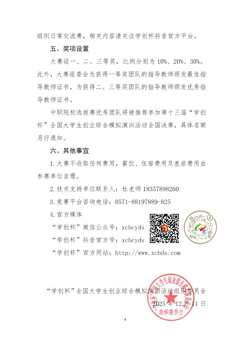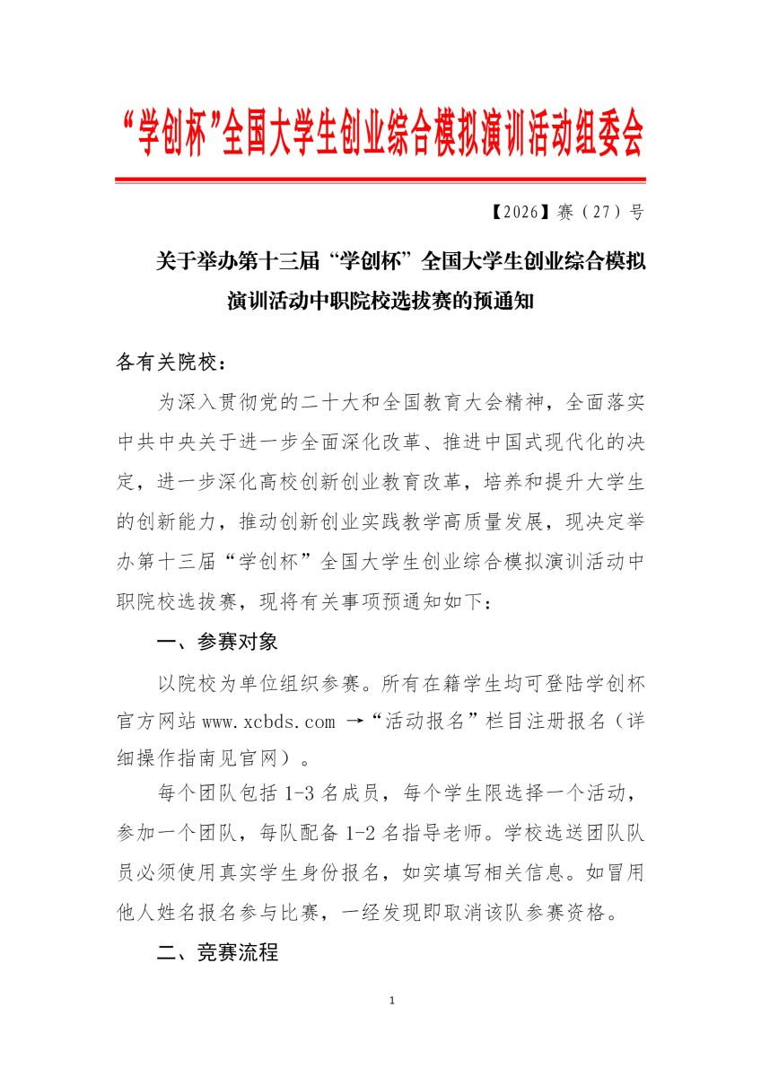 关于举办第十三届“学创杯”全国大学生创业综合模拟演训活动中职院校选拔赛的预通知