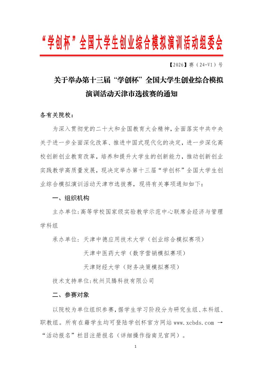 关于举办第十三届“学创杯”全国大学生创业综合模拟演训活动天津市选拔赛的通知