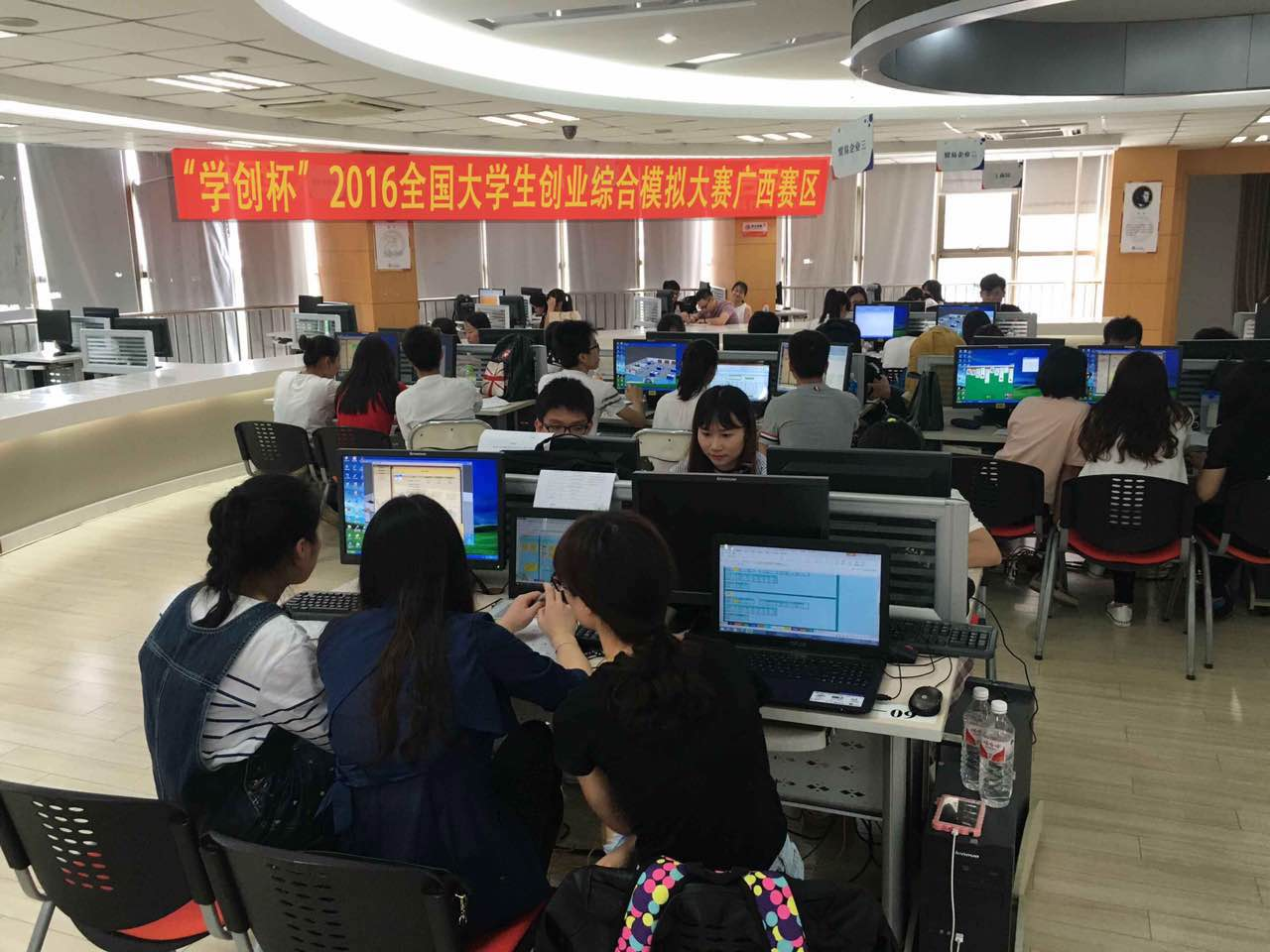 5月20日,由高等学校国家级实验教学示范中心联席会经济与管理学科组主办,杭州贝腾科技有限公司提供技术支持的2016“学创杯”全国大学生创业综合模拟大赛广西区赛(本科组)在广西大学举行。来自全区20多所高校近五十支团队展开了激烈的经营竞争。